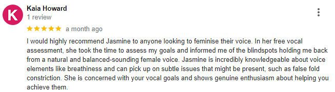 Access a 60min Masterclass 'The 3 Step Framework to Feminise Your Voice'! This will show you the exact structure we use with our clients to give them the greatest odds of success on their vocal journey!